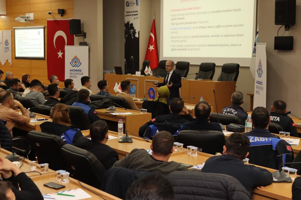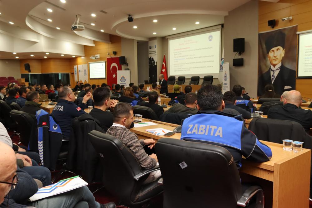 Türkiye Belediyeler Birliği eğitmeni, Tüketici Hakları Derneği Genel Başkanı Ergün Kılıç tarafından verilen eğitimde; 5393 sayılı Belediye Kanunu, 5326 sayılı Kabahatler Kanunu, Zabıta Yönetmeliği, idari yaptırımlar ve denetim usulleri başta olmak üzere zabıtanın görev alanına giren temel mevzuat konularında kapsamlı bilgilendirmeler yapıldı.