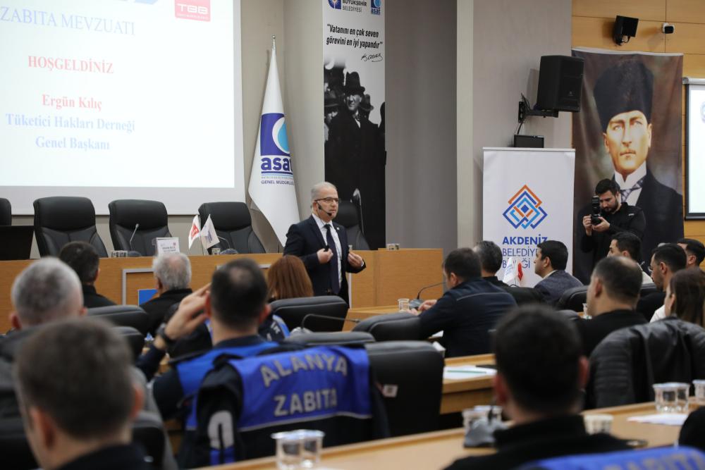 Türkiye Belediyeler Birliği eğitmeni, Tüketici Hakları Derneği Genel Başkanı Ergün Kılıç tarafından verilen eğitimde; 5393 sayılı Belediye Kanunu, 5326 sayılı Kabahatler Kanunu, Zabıta Yönetmeliği, idari yaptırımlar ve denetim usulleri başta olmak üzere zabıtanın görev alanına giren temel mevzuat konularında kapsamlı bilgilendirmeler yapıldı.